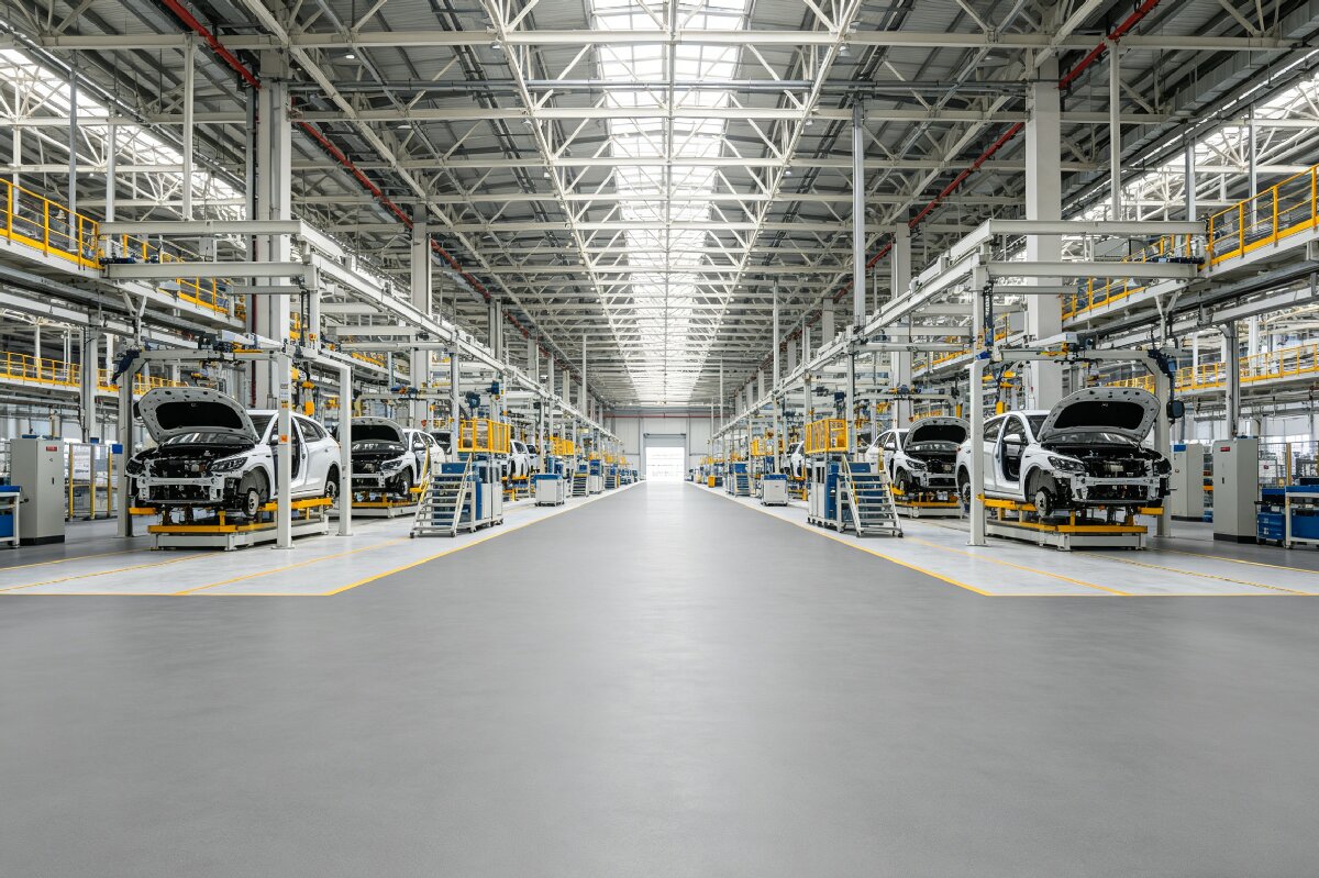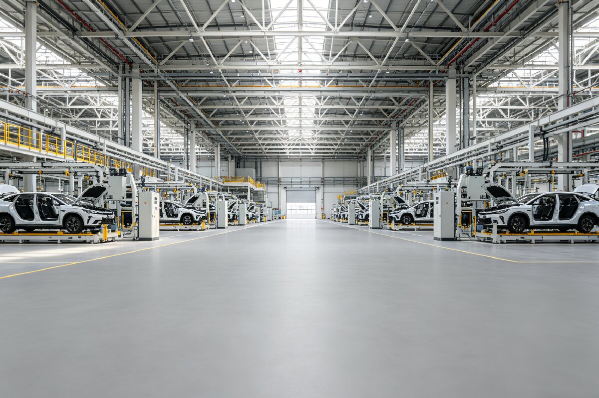 Automobile workshops have heavy equipment, high-frequency logistics and oil pollution, requiring extreme pressure-resistant, wear-resistant and chemical-resistant flooring. Shanghai BYD, a new energy vehicle manufacturing base, chose DaJuLong double glass fiber industrial flooring for workshop upgrading.