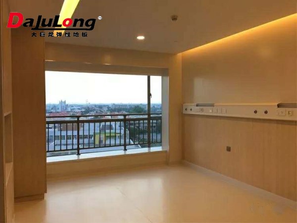 广州安和泰妇产医院项目豪华套房搭配同色大巨龙地板,对于豪华套房实至名归。该项目的大部分地面材料选用大巨龙集团旗下《保加利亚》系列PVC同质透心地板,面积6万多平方米。