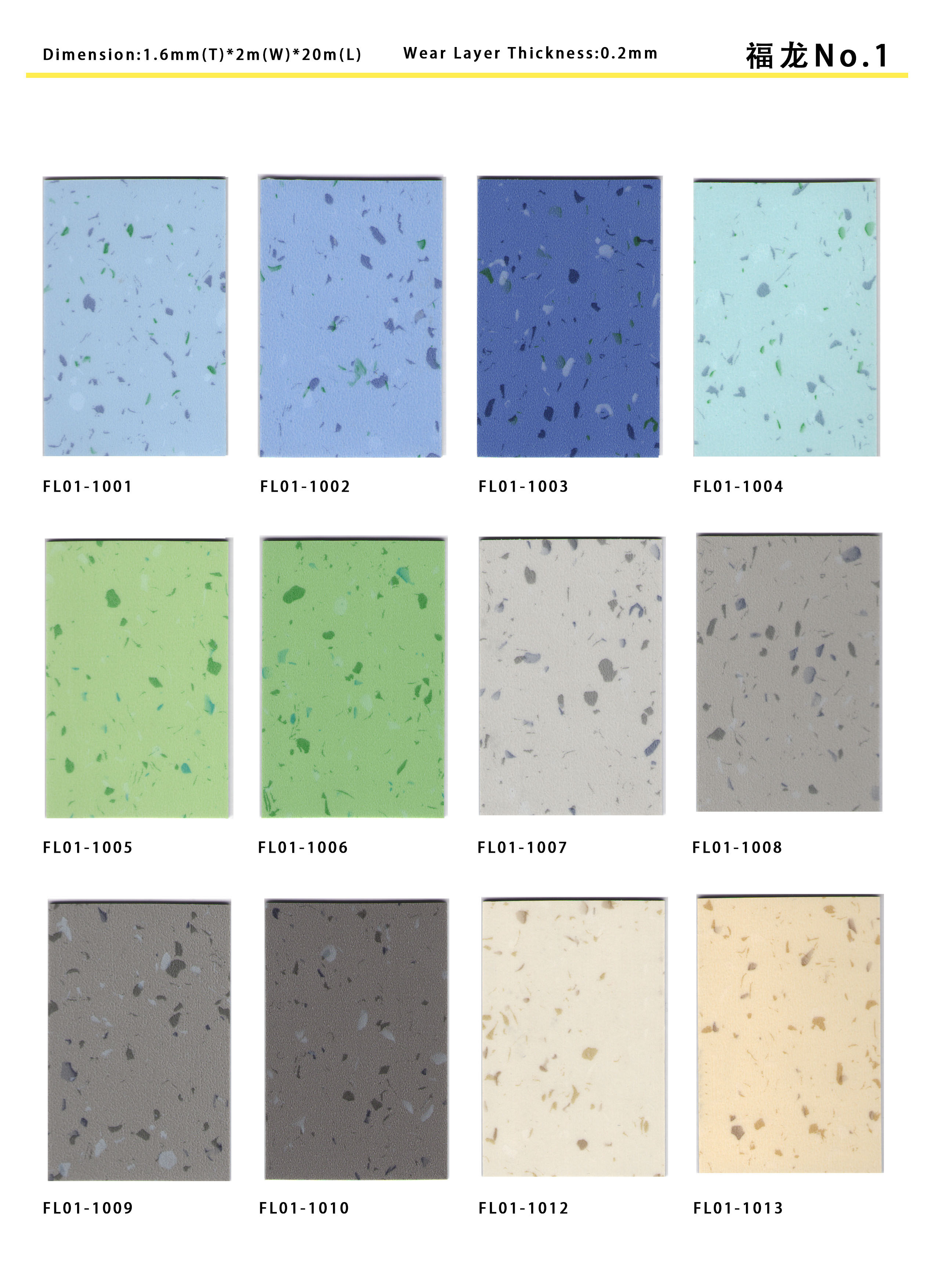 大巨龙福娃系列1.6厚度商用pvc卷材地板是多层复合致密地面材料,可供2 米宽规格的卷材,耐磨等级为T 级。表面花纹图案在透明耐磨层的保护之下经久不变。玻璃纤维加强层及致密背层使产品具有优异的耐压 痕性能,可抵抗静、动滚轮载荷,尺寸稳定不易变形。