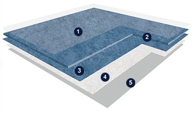 玻璃纤维加强层及致密背层,优异的耐压痕性能,可抵抗静、动滚轮载荷。